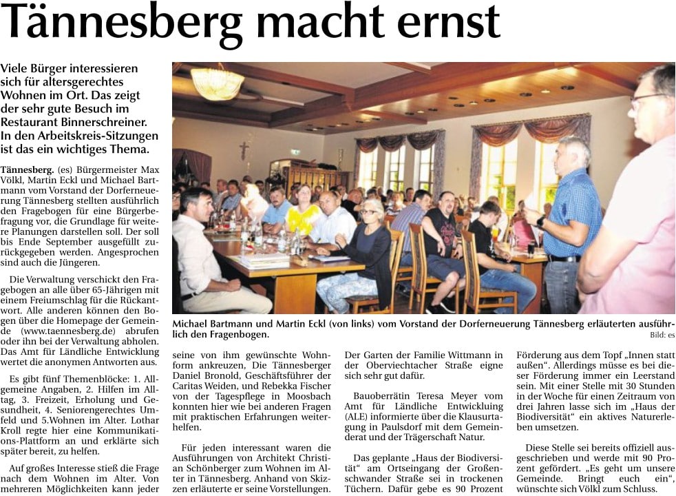 Wir würden uns freuen, wenn Sie den folgenden Fragebogen ausfüllen und zurückgeben würden. Wir wenden uns hierzu an alle Bürgerinnen und Bürger, auch an die Jüngeren unter Ihnen. Denn wir wollen nicht definieren, wann „Älter sein“ beginnt und darüber hinaus auch „Jüngere“ zur Mithilfe gewinnen, und ihnen die Möglichkeit eröffnen, ihr „Älter werden“ in der Gemeinde Tännesberg mitzugestalten.