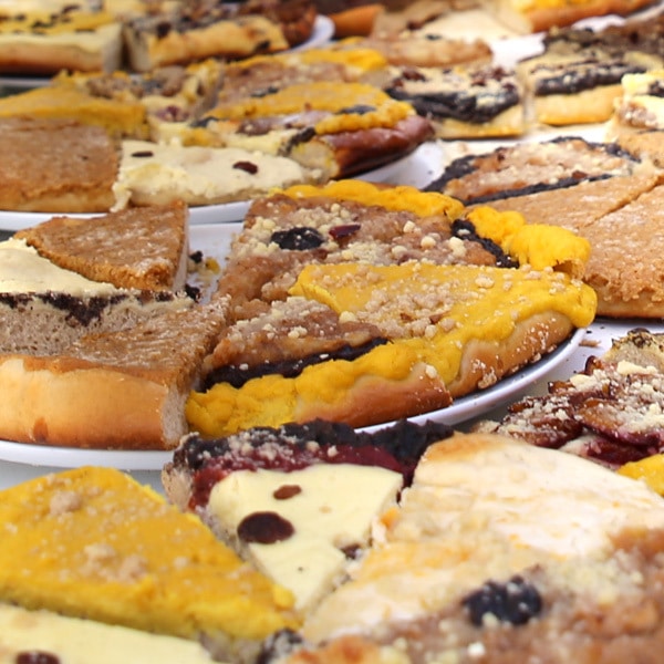 Emmer-Kuchen (Schmierkuchen, Guglhupf, diverse Obstkuchen nach Saison der Früchte – alle Früchte aus dem eigenen Garten oder von Erzeugern aus der Region)